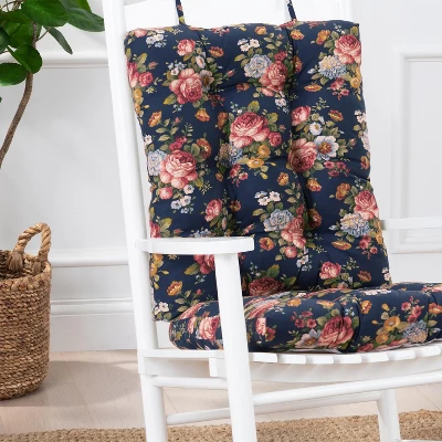 Elevate your outdoor living space with the bella rose stylish medium scale printed floral pattern ties to secure rocker set. These exquisite ties add a touch of sophistication and charm to your rocker set, featuring a vibrant floral design and secure ties for a custom fit. Crafted from durable and weather-resistant materials, these ties are both stylish and functional. Easy to apply and versatile in style, the Bella Rose Rocker Set Ties are the perfect way to transform your outdoor area into a more inviting and elegant environment. This barstool cover is available in Rocker Set 18″x24″. Color: Navy