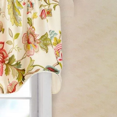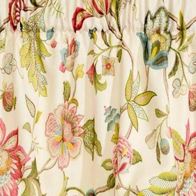 Ellis Curtain Brissac classic Jacobean floral meets a stylish color pallet for this fashionable window treatment. Polyester textured high quality fabric creates a smooth draping effect soft texture and easy maintenance. This scallop valance is lined with a natural color material. Length is measured from the top stitch line of the rod pocket to the bottom edge longest point of the curtain. Brissac floral print scallop valance window curtain measures wide 70 Inch x 17 Inch long and is made with a 3 inch wide rod pocket. One Brissac scallop valance curtain will accommodate approximately 35 inches of window width. Sold as a single. Dimension: 70″ x 17″. Made from 100% Polyester that creates a smooth and soft draping effect. Available color is Red. Care instruction: Easy care – Machine Wash – Dry.