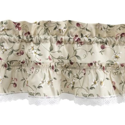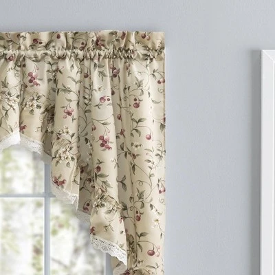 Transform your windows with the Ellis Cherries ruffled swag. Add some style and charm to your windows with this swag. The swag is made of a polyester and cotton blend fabric that is easy to wash and maintain. The swag has a 1.5-inch rod pocket that fits most standard rods and a lace edge for an elegant look. The swag measures 58 inches wide and 36 inches long and is lined for extra durability and privacy. The Ellis Cherries ruffled victorian is a perfect choice for any room in your home, whether you want to create a cozy bedroom, a chic living room, or a formal dining room. Color: Natural.
