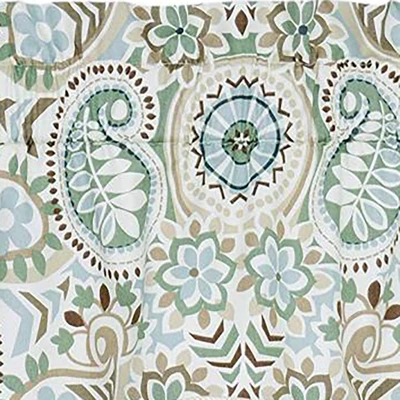 Add some style and charm to your windows with the Ellis paisley prism valance. This valance features a stunning paisley print in soft hues of green, brown, and blue on a latte background. The valance is made of a polyester and cotton blend fabric that is easy to wash and maintain. The valance has a 3-inch rod pocket that fits most standard rods and a corded edge for a neat finish. The valance measures 50 inches wide and 15 inches long and is lined for extra durability and privacy. The Ellis paisley prism valance is a perfect choice for any room in your home, whether you want to create a cozy bedroom, a chic living room, or a formal dining room. Color: Latte.