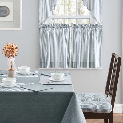 Ellis Curtain Plaza Classic Ticking Stripe Printed On Natural Ground 1.5″ Rod Pocket Tailored Swag 56″ X 36″ Blue