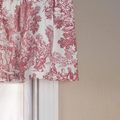 Victoria park toile water proof room darkening blackout tailored valance by Ellis Curtain goes way beyond just looking great. Toile print fabric originated in France in the 18th century and immediately became a popular decorating pattern that still holds true today. The classic country scenes and soft cotton fabric will change and improve the look and feel of any room while adding a touch of style. Made with 100% cotton creates a smooth draping effect and softer texture that can’t be achieved with inferior synthetic fabrics. You are sure to get a Valance. thats beautiful and functional in a decorating pattern that’s timeless and long-lasting. The Tailored Valance. is constructed with a 3-inch rod pocket and a 2-inch header. Available in Gray, and Red color. Measures: 70″ x 12″
