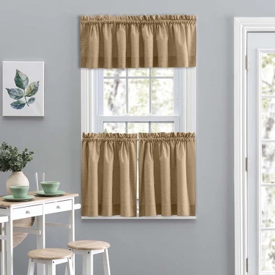 Ellis Lisa Solid Color Poly Cotton Duck Fabric Tailored Tiers 1.5″ Rod Pocket Add A Touch Of Color To Room Tan