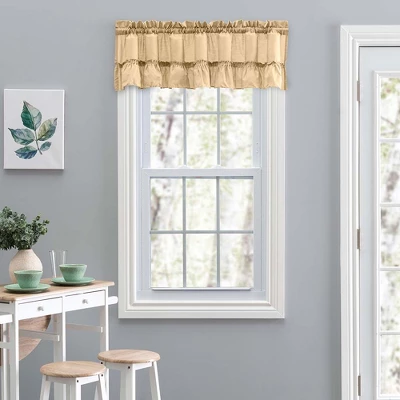 The Ellis Stacey solid color high-quality fabric ruffled filler valance is a pair of valance that is made of a blend of 70% polyester and 30% cotton. They have a classic ruffled design and a 1.5″ rod pocket. This valance is machine washable and dry. This valance would be a great addition to any room. They are stylish, durable, and easy to care. Measure: 54″ x 13″. Color: Almond.
