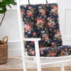 Ellis Bella Rose Stylish Medium Scale Printed Floral Pattern Ties To Secure Rocker Set 18″x24″ Navy