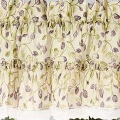 Ellis Curtain Cherries Ruffled 1.5″ Rod Pocket Swag For Windows Lace Edge 58″ X 36″ Natural