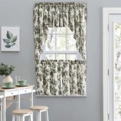 Ellis Curtain Madison Floral Design Printed Natural Ground 1.5″ Rod Pocket Tailored Tier Brick
