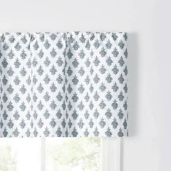 Ellis Curtain Madison Floral Design Printed Natural Ground 1.5″ Rod Pocket Tailored Tier Blue