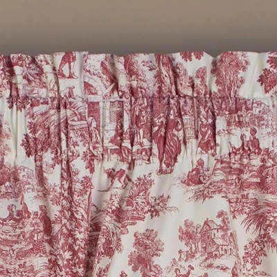 Victoria park toile room darkening blackout tailored valance by Ellis Curtain goes way beyond just looking great. Toile print fabric originated in France in the 18th century and immediately became a popular decorating pattern that still holds true today. The classic country scenes and soft cotton fabric will change and improve the look and feel of any room while adding a touch of style. Made with 100% cotton creates a smooth draping effect and softer texture that can’t be achieved with inferior synthetic fabrics. You are sure to get a Valance that’s beautiful and functional in a decorating pattern that’s timeless and long-lasting. The Tailored Valance is constructed with a 3-inch rod pocket and a 2-inch header. Measures: 70″” x 28″” Available in Red color.
